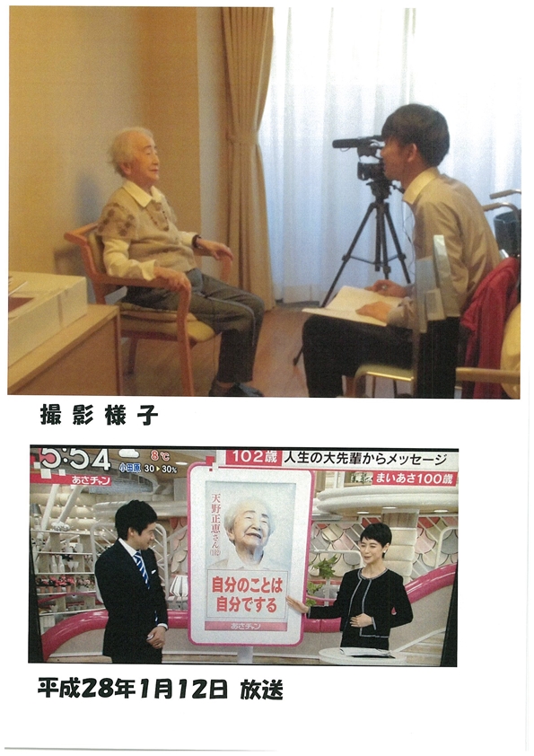 ご入居者の天野正恵さん(102歳)がTBS-TV「あさチャン」に出演しました!
