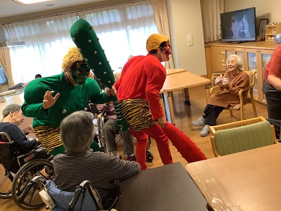 令和6年2月2日、鬼に扮した職員が各フロアをまわり、ご利用者様に節分の豆まきをして頂きました。『鬼は~そと、福は~うち!』と力強く豆を投げつけるみなさま。「かわいい鬼ね」「今年1番笑ったわ」などの声も聞かれ、みなさま季節の行事を思い思いに楽しまれていました。フロアから退散する鬼に「ご苦労さま」と優しく声を掛けて下さるご利用者様に、鬼役の職員も仮面の下で苦笑い。
